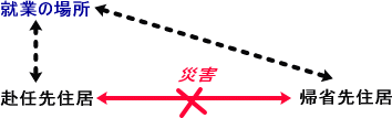 ▼赤い実線の矢印で示した移動中の災害が、新たに保護の対象となりました。